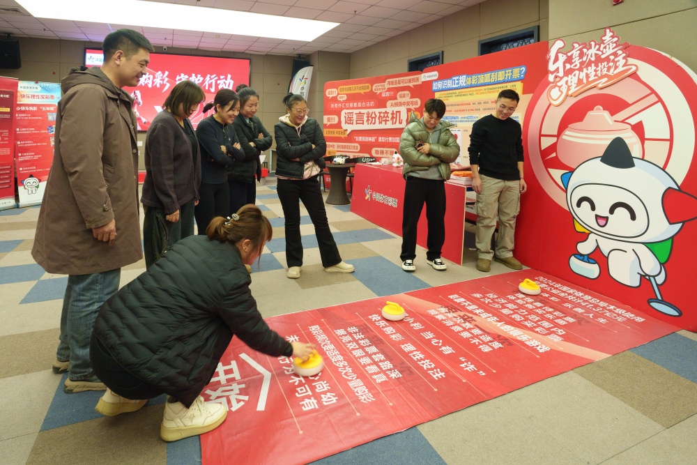 现场的趣味互动体验区,吸引了众多市民踊跃参与。“谣言粉碎机”活动区域,帮助市民了解关于彩票与赌博的常见误解;“远离圈套趣味投壶”“乐享冰壶理性投注”等游戏,把反诈知识融入互动竞技中;体彩工作人员通过设置宣传展板、发放科普折页、现场答疑等形式,向过往市民讲解体育彩票的公益属性、购彩规则,重点普及非理性购彩的危害、防范网络非法售彩等内容,详细讲解鉴别非法彩票的“三招技巧”——查销售资质、核官方信息、辨票据真伪,同时系统解读理性购彩“四不原则”,提醒居民购彩应量力而行,引导大家树立“理性购彩、量力而行”的正确观念。现场还展示了来自高校师生创作的体彩文创作品及长春非遗课堂的非遗手作,精彩的设计吸引不少居民的关注。