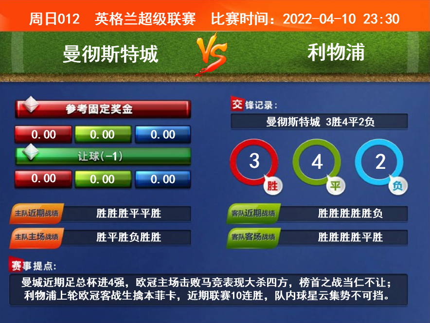 4月10日竞彩重点赛事