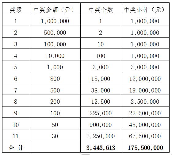 ”,即中得右方奖金对照表中所对应的奖金。附加玩法中奖奖金不可兼中兼得。