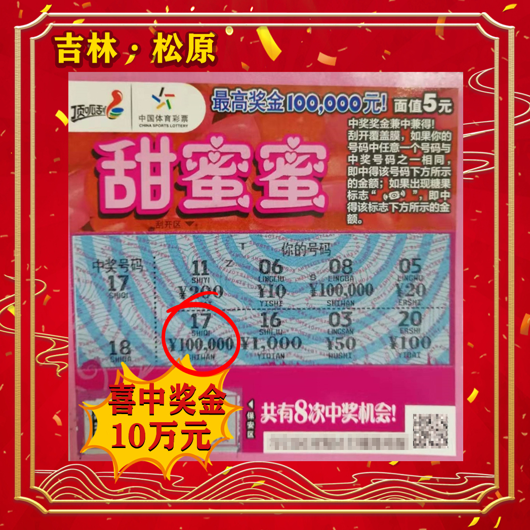 【即开】“甜蜜蜜”再出惊喜!松原购彩者收获奖金10万元2023-05-11 -