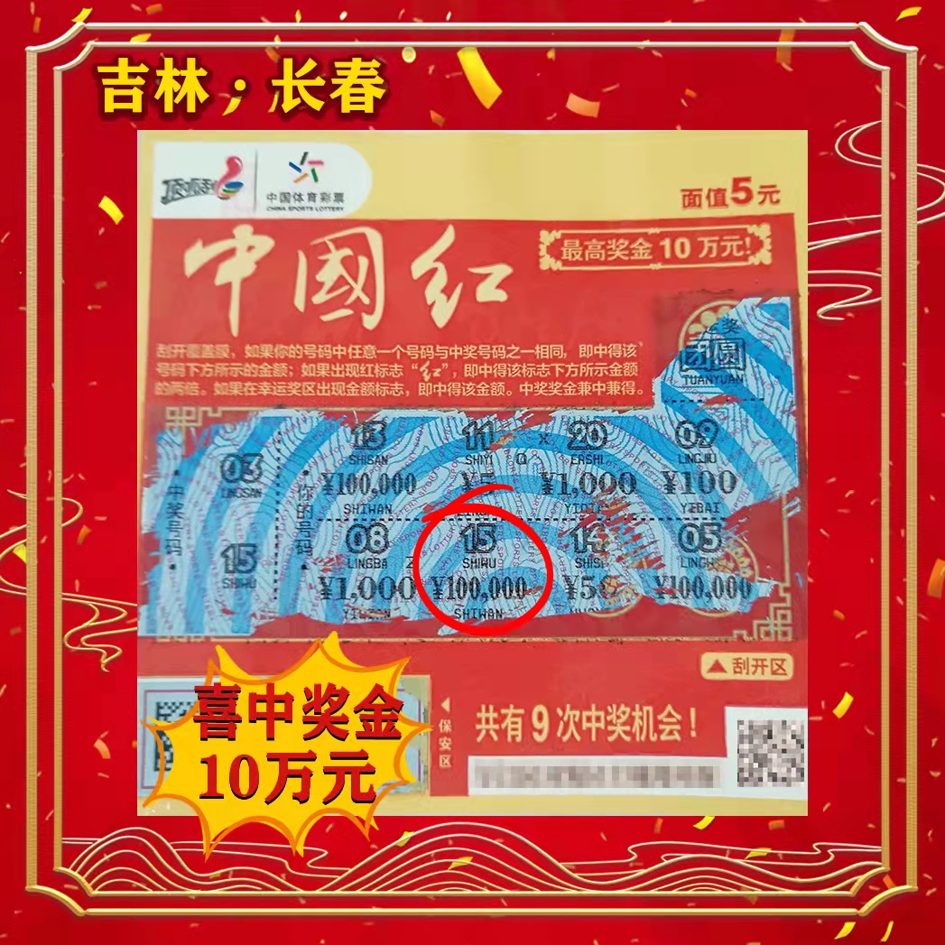 “中国红”再送惊喜!长春购彩者喜中“中国红”一等奖10万元2023-05-13 -